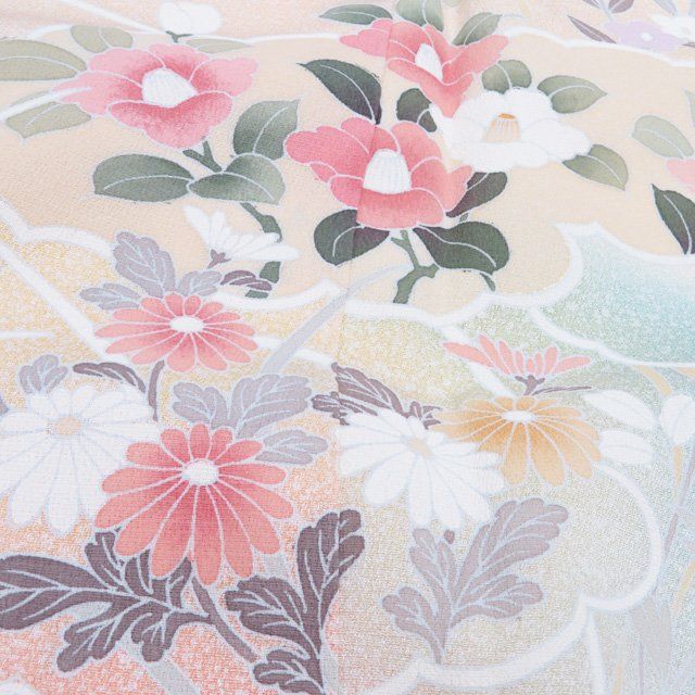 訪問着 着物 正絹 袷 フォーマル 花の図 薄橙色 多色 身丈170cm 裄68.5cm L トール きもの北條 A1280-8の検索結果