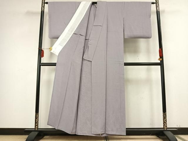 色無地 身丈163.5cm 裄丈65cm M 袷 地紋 灰色 正絹 秀品