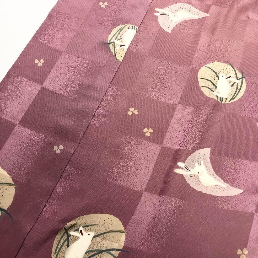 長襦袢 単衣 月にうさぎ柄 白詰草 格子模様 積紅色 J-215の検索結果