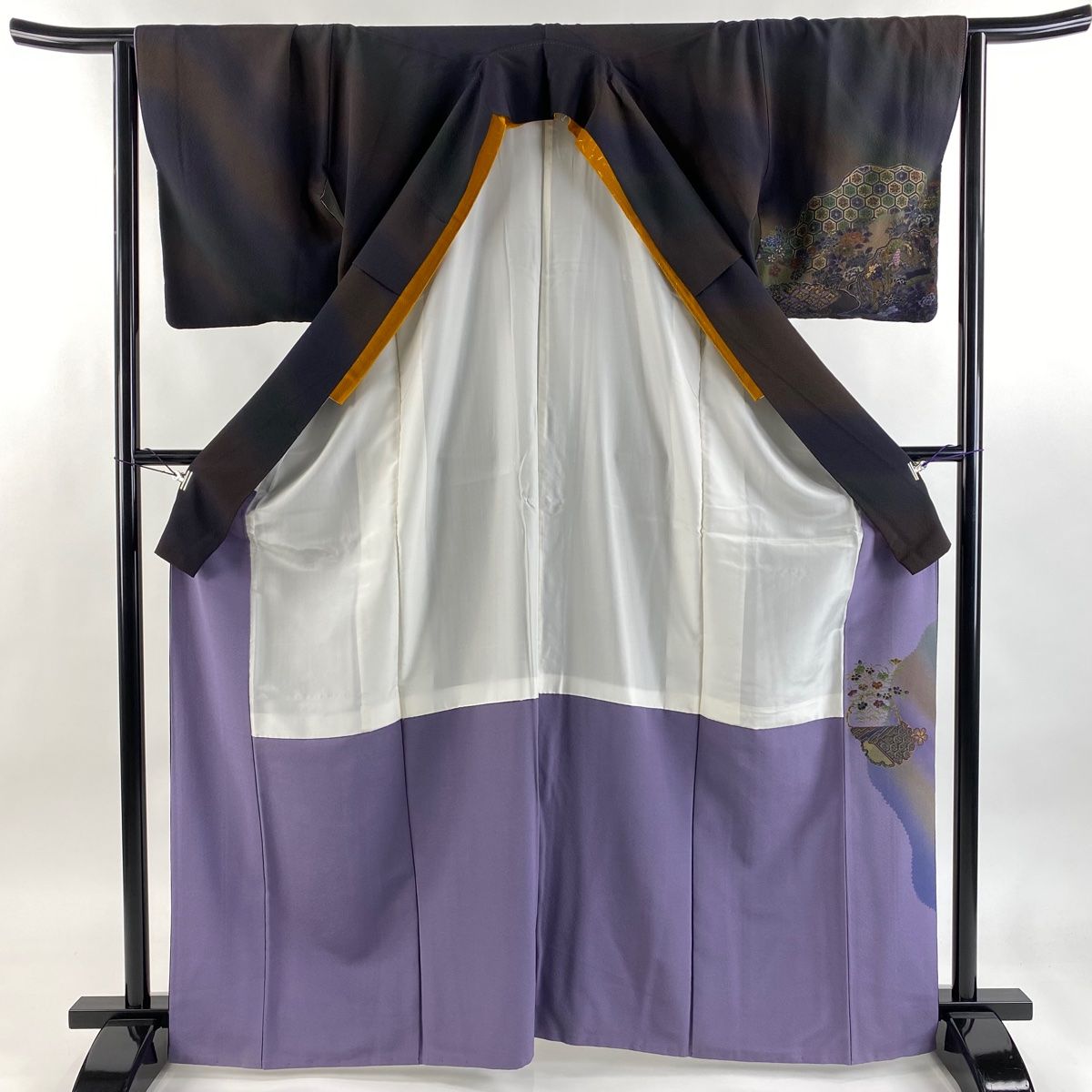 訪問着 身丈166cm 裄丈65.5cm M 袷 前田仁仙 落款 鳳凰 草花 金彩 ぼかし 濃紫 正絹 秀品 一つ紋 GLOBALQUALITYIMPORTS_COM