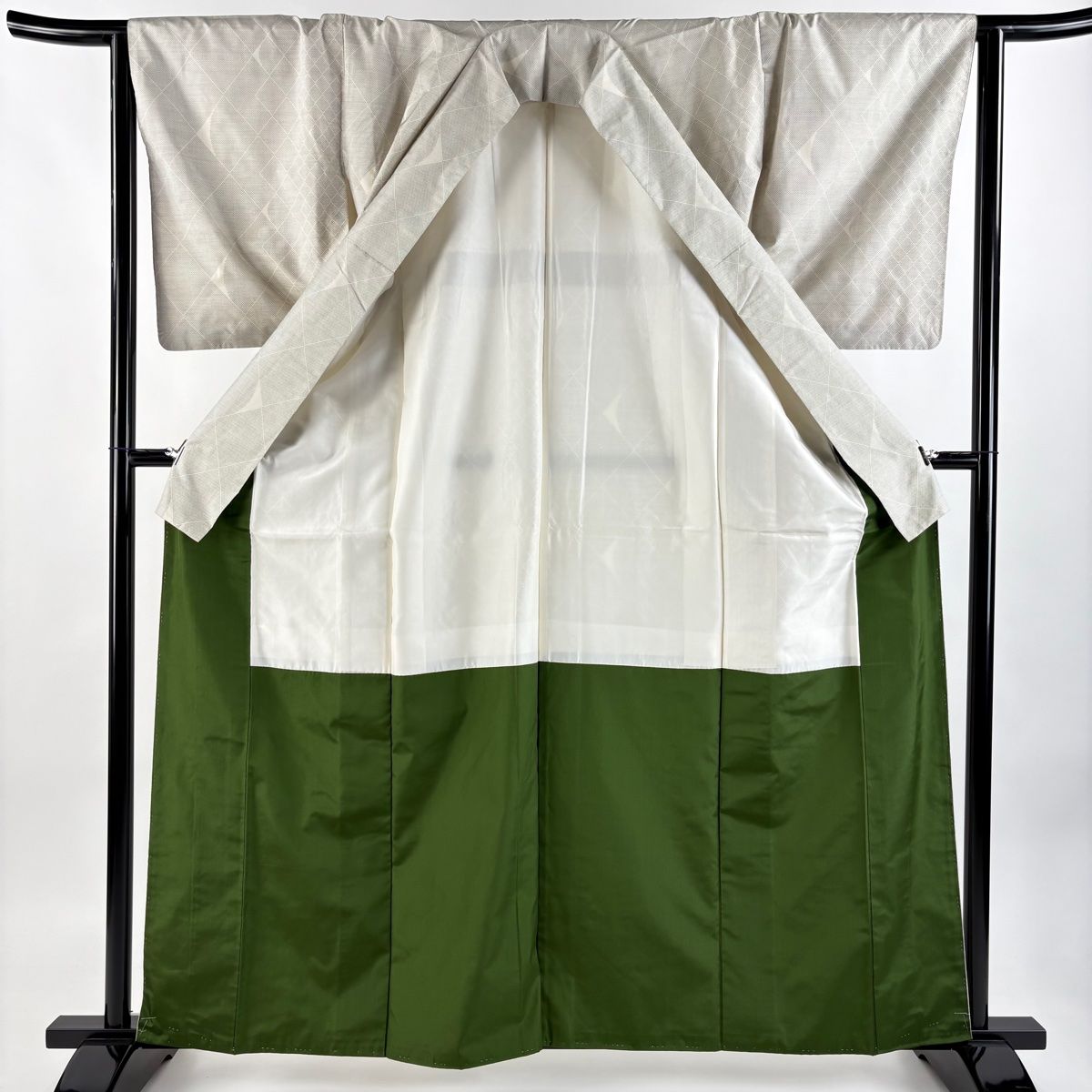 大島紬 身丈162.5cm 裄丈64.5cm M 袷 証紙 斜め格子 幾何学 灰白 正絹の検索結果
