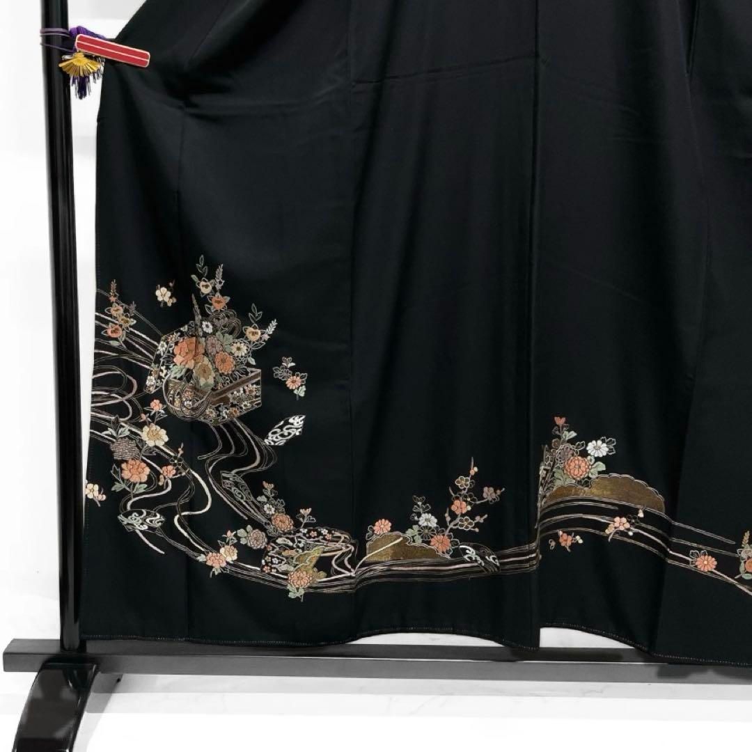 アンティーク 黒留袖 刺繍 相良刺繍 牡丹 菊花 立花 着物 101b p
