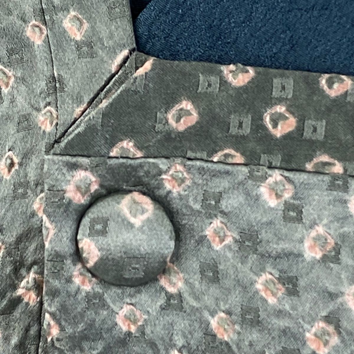 道行 身丈92cm 裄丈66cm M 和装コート 角衿 幾何学模様 地紋 絞り 灰緑 正絹 秀品の検索結果