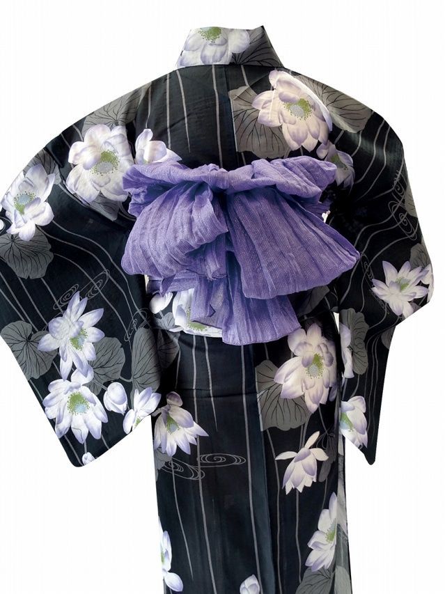 浴衣 レディース 帯セット フリーサイズ 黒地 睡蓮 HLY24-276-Gの検索結果