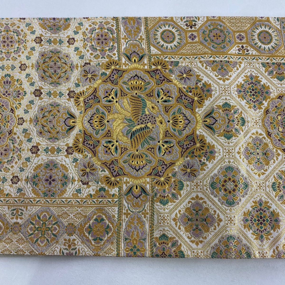 袋帯 秀品 落款 華文 花鳥 箔 金色 六通 正絹 GLOBALQUALITYIMPORTS_COM