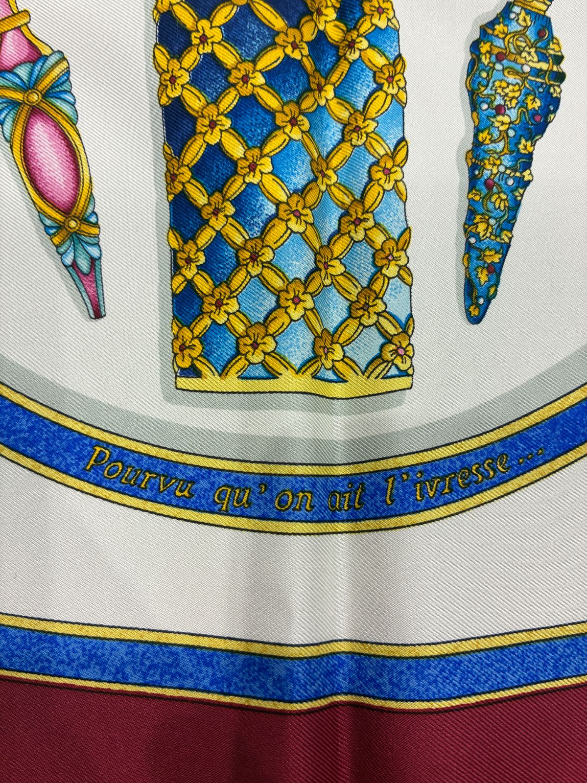 エルメス HERMES カレ 90 CANNES&POMMEAUX ステッキ柄 スカーフ シルク イエロー マルチ レディース