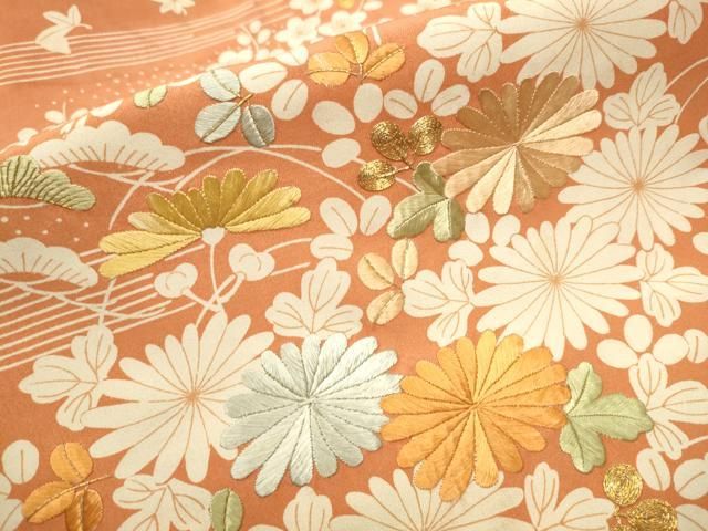 平和屋着物 夏物 アンティーク 大正ロマン 丸帯 檜扇草花文 金銀糸 正絹 DAAW4506cm