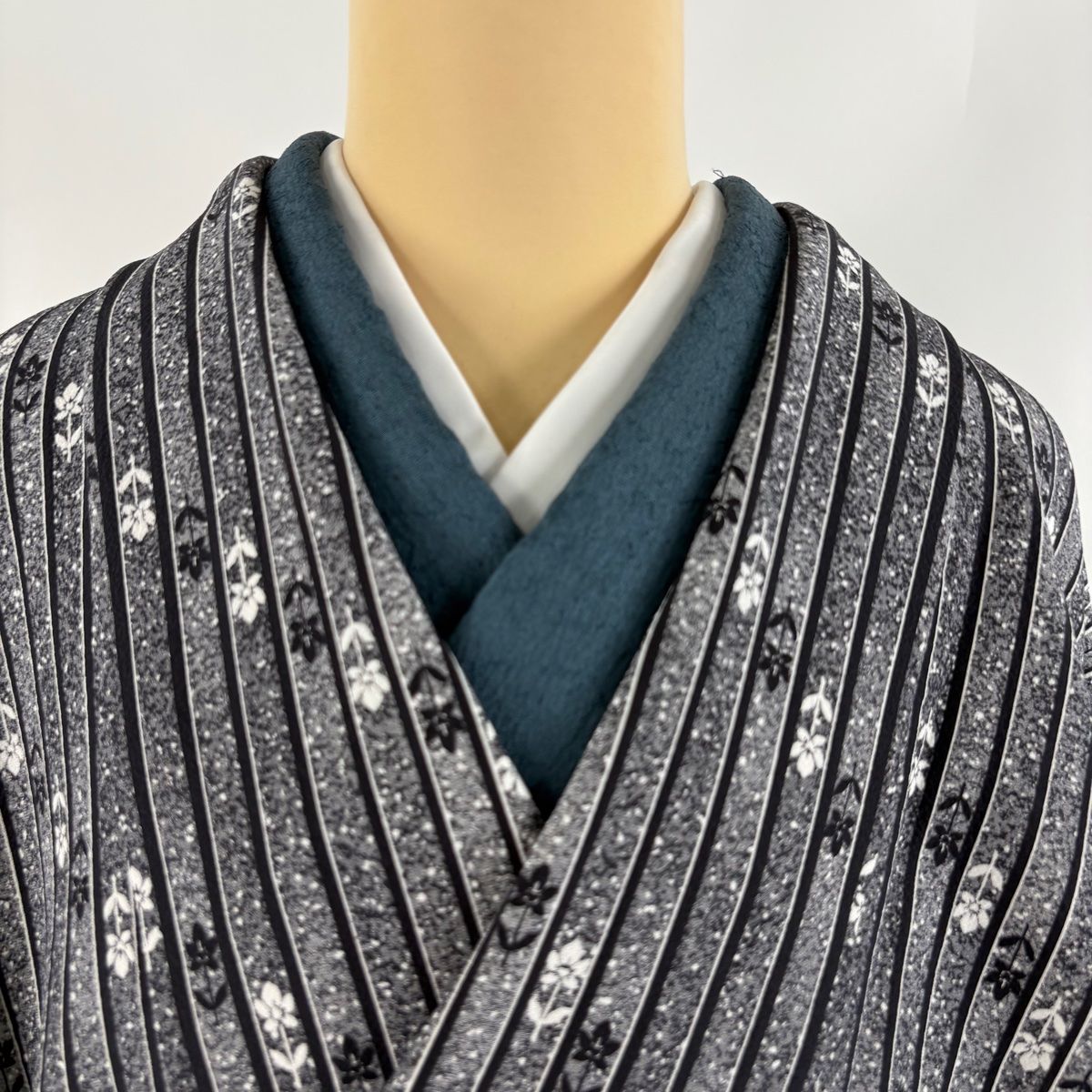 道中着 身丈91cm 裄丈66cm M 和装コート ますいわ屋 草花 縞 灰色 正絹 秀品の検索結果