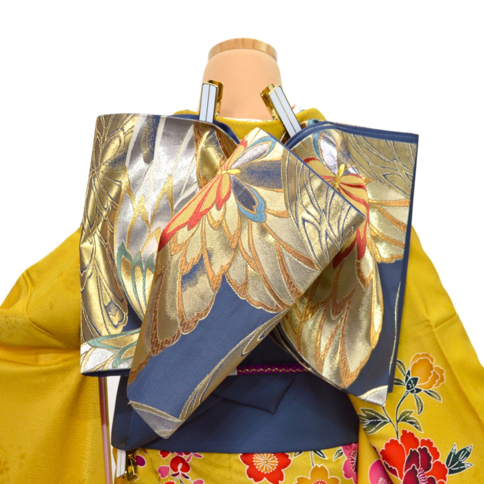 正絹 振袖フルセット S〜Mサイズ 紅型 成人式 山吹色 パールトーン加工済み 長襦袢付き お仕立て済み イエロー パープル グリーン 個性的 伝統 古典 着物 豪華 結納 卒業式 振袖セット F228 GLOBALQUALITYIMPORTS_COM