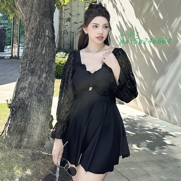 水着 レディース フィットネス水着 体型カバー フィットネス水着 大きいサイズ シンプル 袖あり 水着スカート 6L 5L 水着 水着 ワンピース水着 yan5a952943