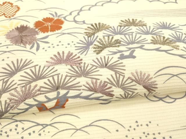 平和屋着物 夏物 アンティーク 大正ロマン 両面 全通柄袋帯 引き抜き帯 駒刺繍 蜻蛉花蝶文 草花松文 正絹 DAAY8140cmの検索結果