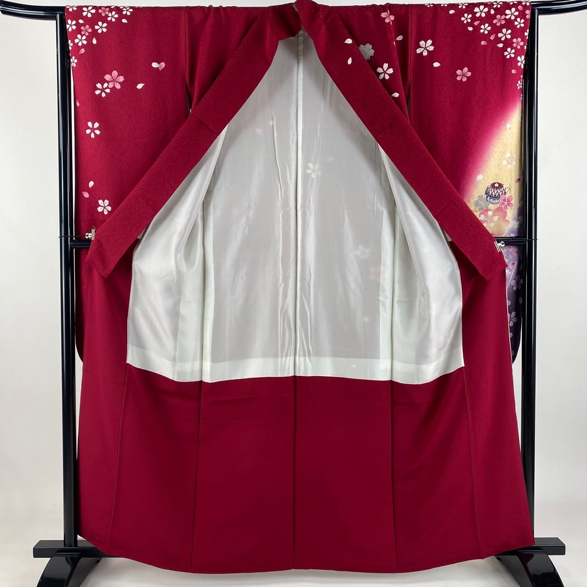 振袖 身丈159.5cm 裄丈63.5cm S 袷 桜 雪輪 金彩 ぼかし 赤 正絹 秀品