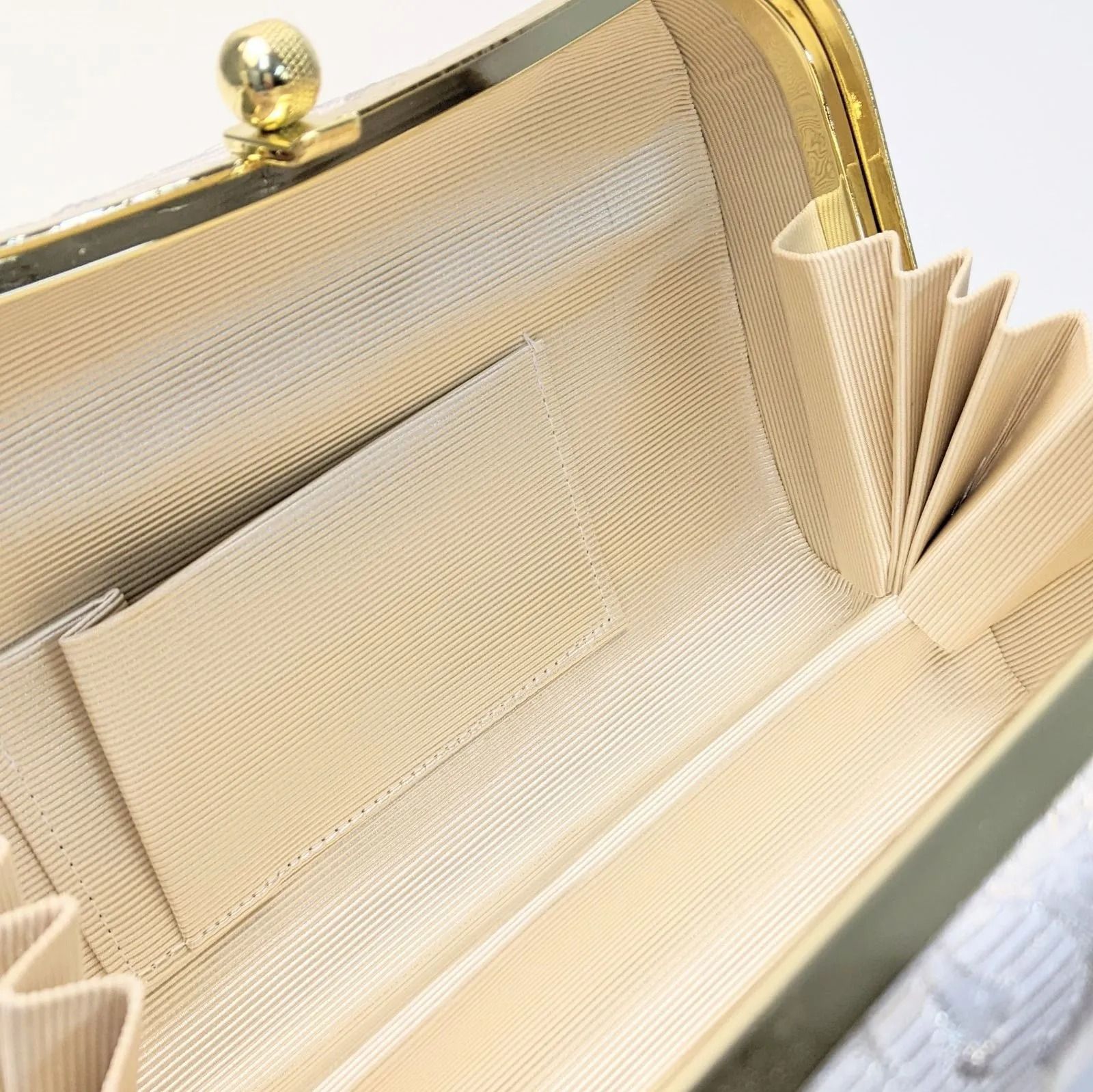 和装バッグ 秀品 ビーズバッグ フォーマル 幾何学 青灰色 ビーズ 和装小物