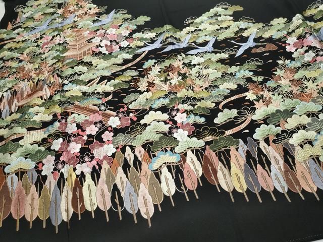 平和屋着物 中国三大刺繍 蘇州刺繍 総刺繍 黒留袖 飛鳥風景松梅文 金糸 正絹 CAAZ0913vfの検索結果