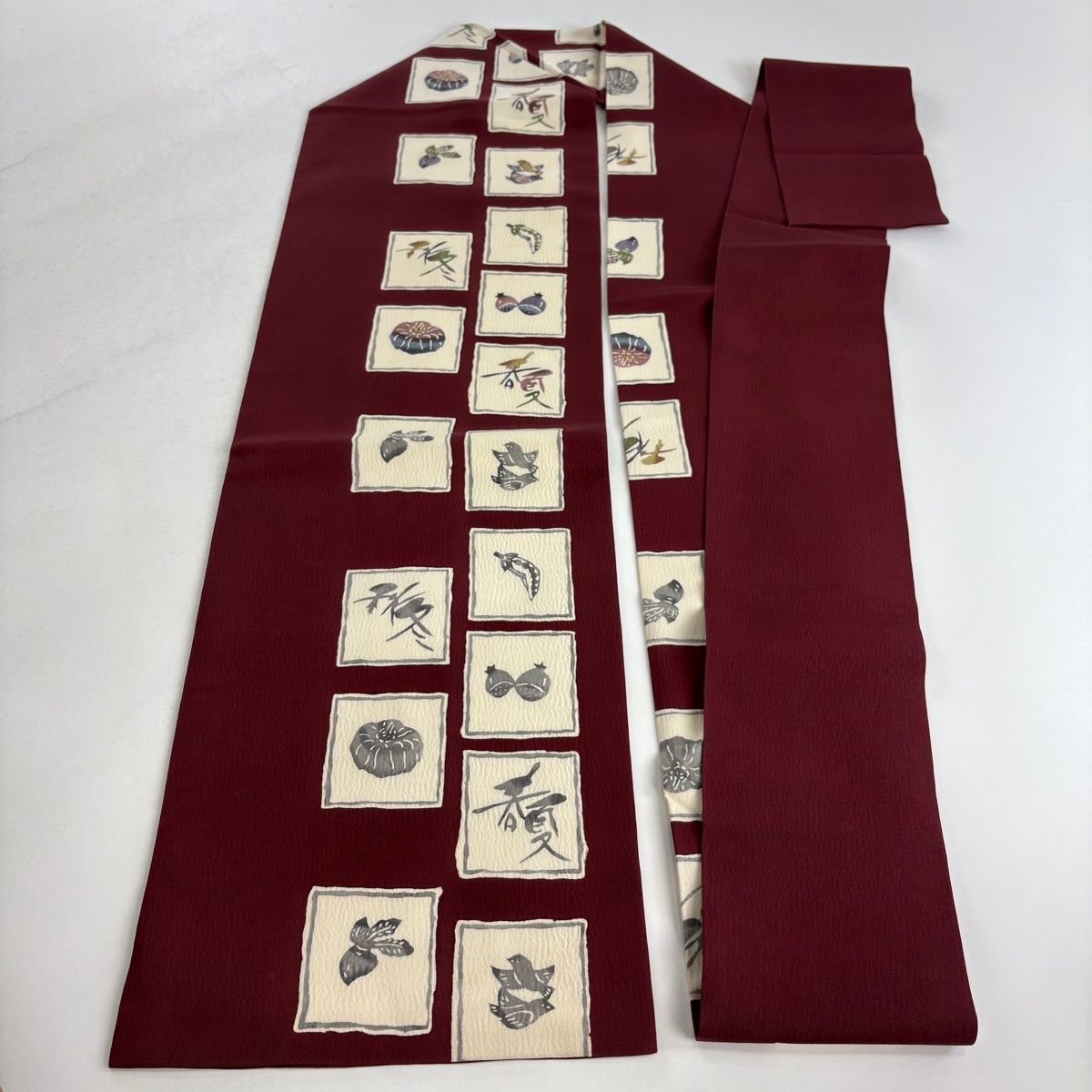 名古屋帯 秀品 生り物 春夏秋冬 えんじ色 正絹 GLOBALQUALITYIMPORTS_COM