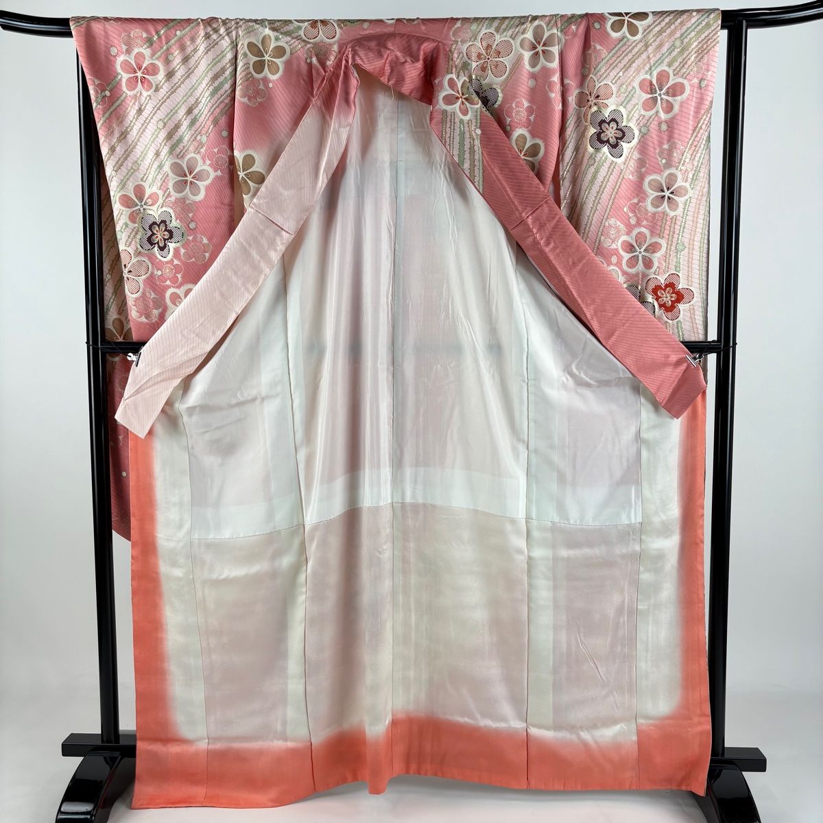 振袖 身丈165cm 裄丈65cm M 袷 梅 斜縞 金糸 金彩 ピンク 正絹 秀品の検索結果