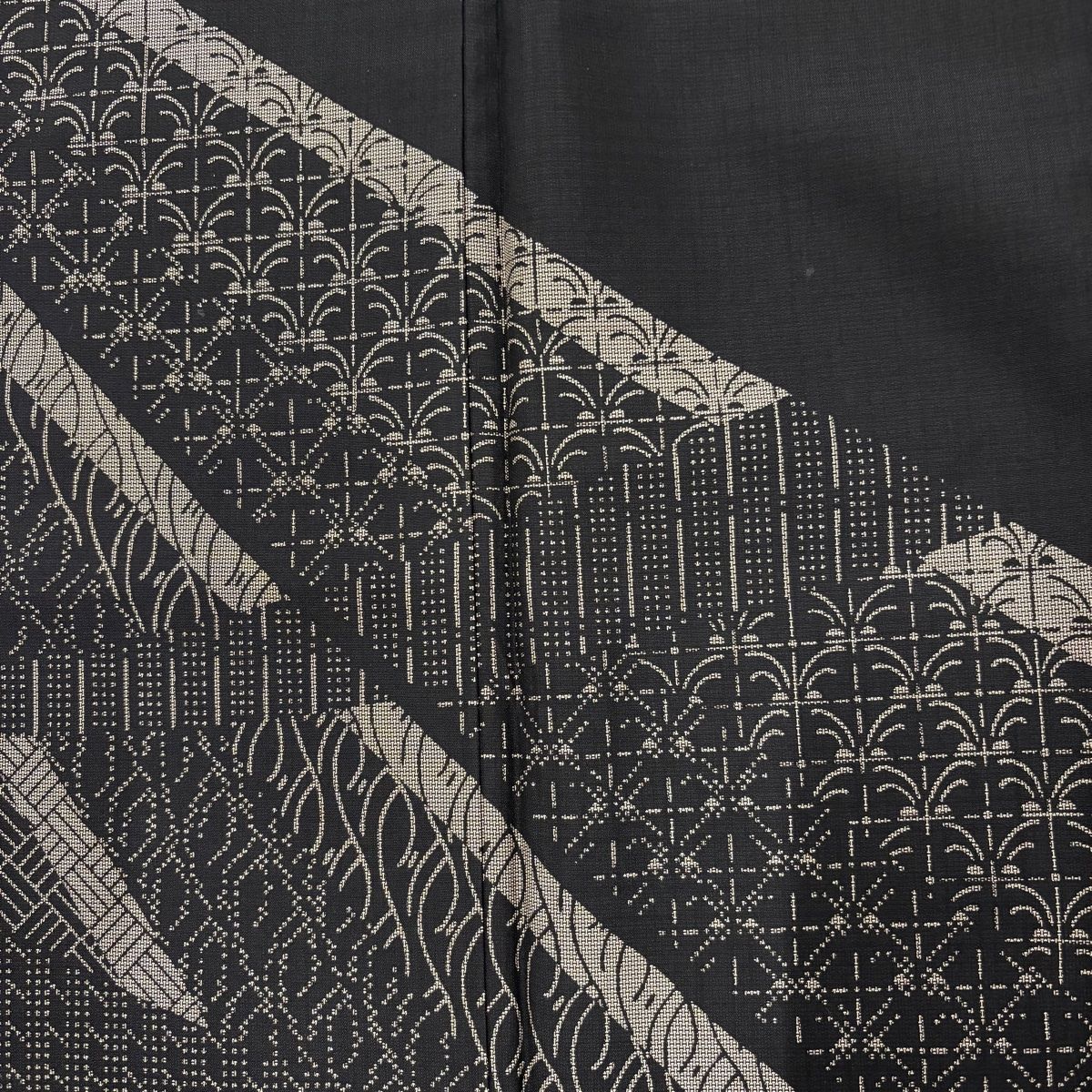 付下げ 身丈158cm 裄丈67cm M 袷 大島紬 純泥染 証紙 幾何学 墨色 正絹の検索結果