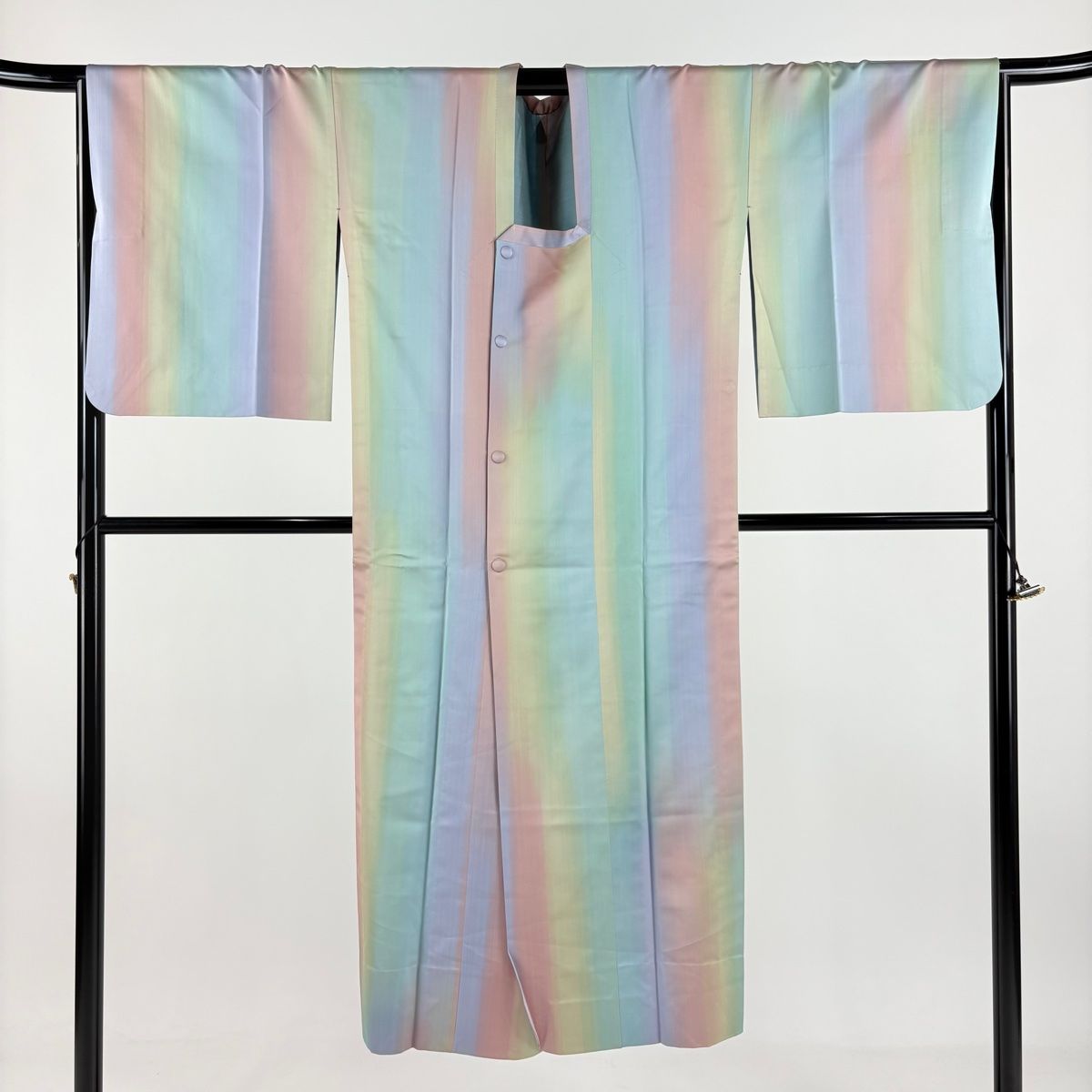 道行 身丈139.5cm 裄丈70cm L 和装コート 角衿 縦縞 染め分け ぼかし 薄緑 正絹 秀品の検索結果