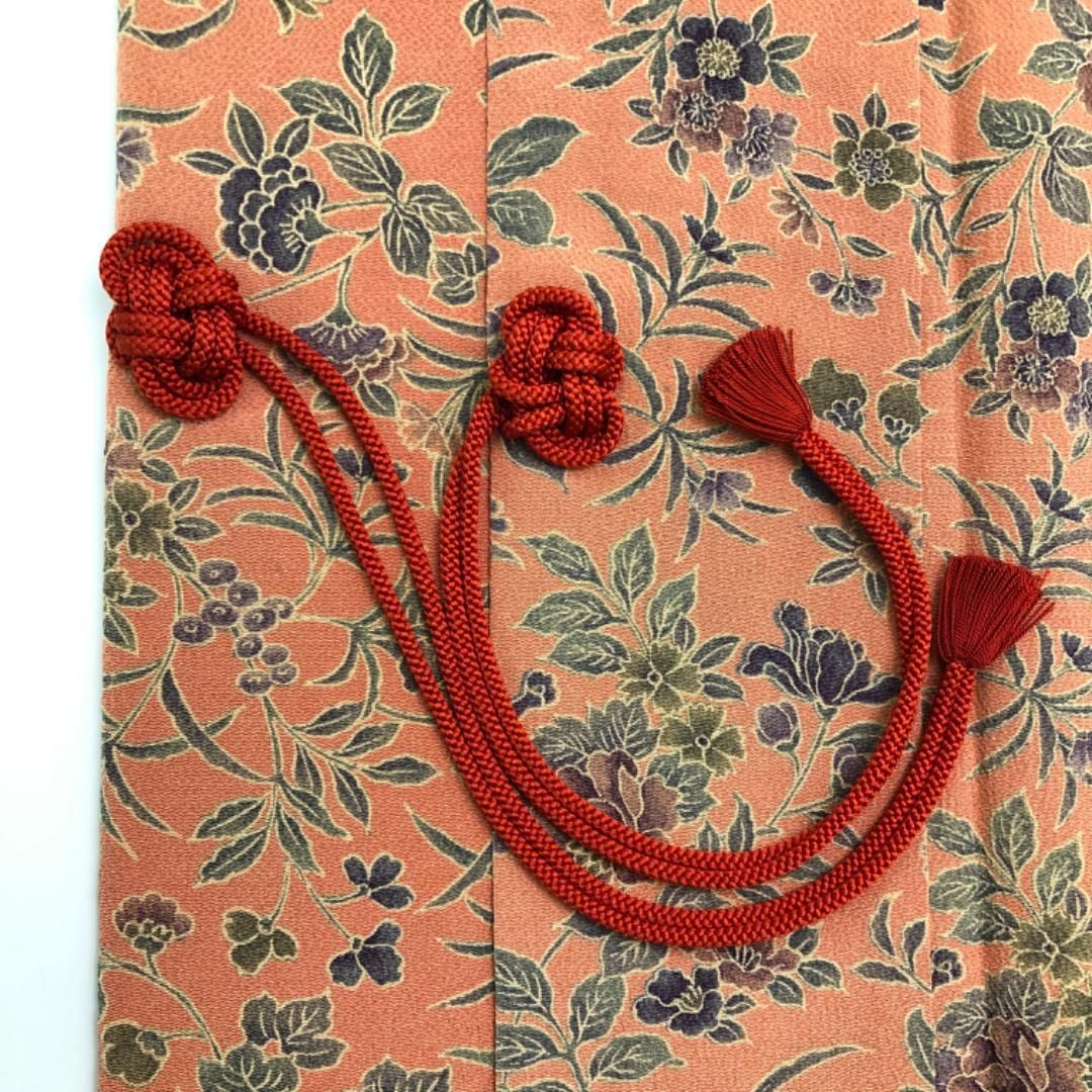 道中着 花柄模様 珊瑚色 縮緬 H-4119の検索結果