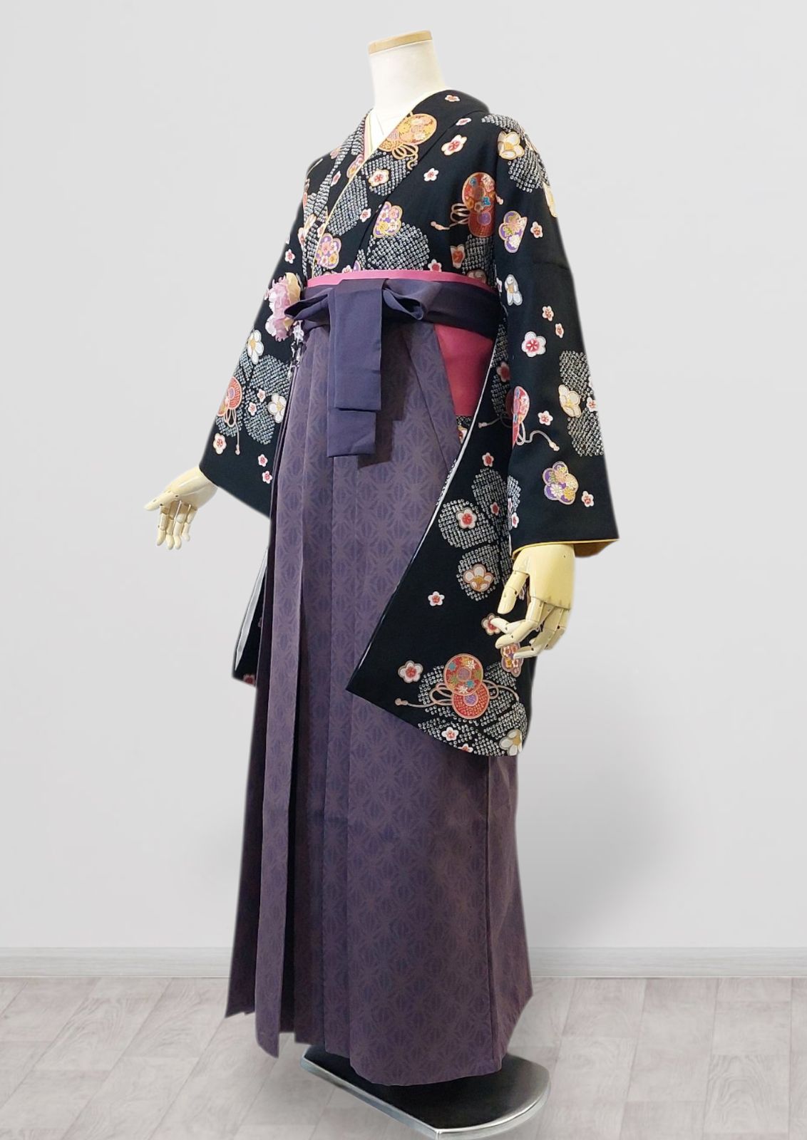 着物 袴 帯 3点セット セット販売 卒業式 に レディース袴セット 成人式 卒業式に 華やか和装 黒 ブラック 紫