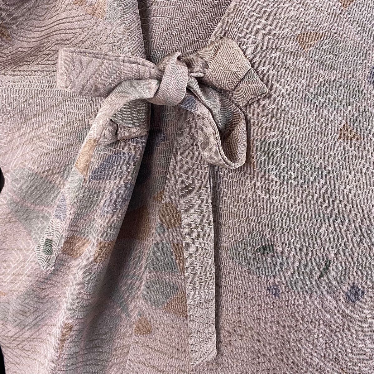 道中着 身丈101cm 裄丈68cm L 和装コート リバーシブル ぼかし柄 灰緑 正絹