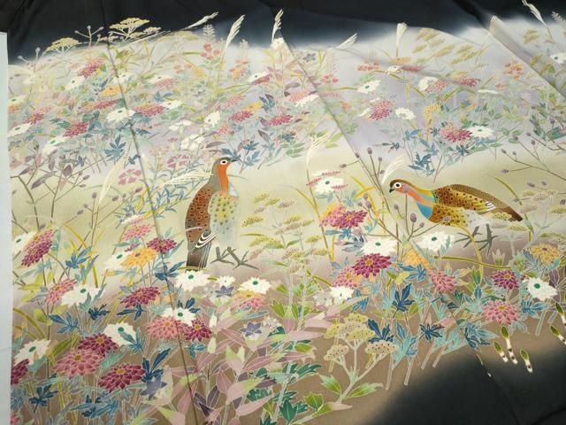 平和屋着物 本加賀友禅作家 百貫華峰 黒留袖 休み鳥草花文 暈し染め 正絹 CAAW7786ycの検索結果
