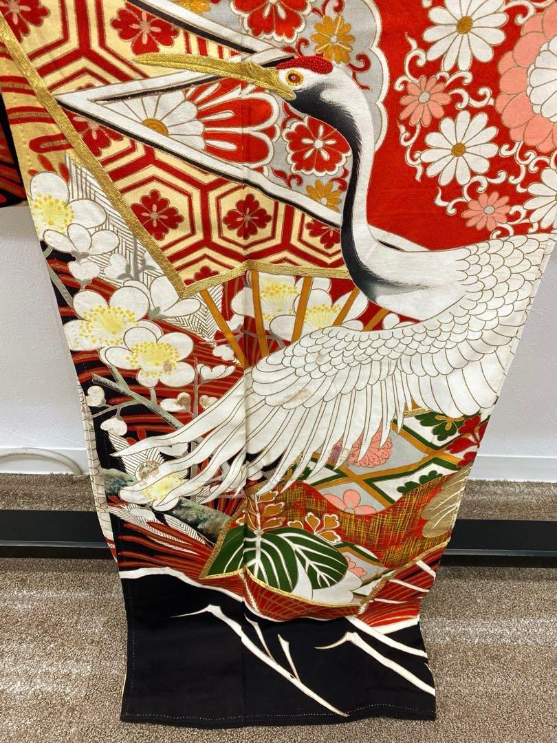 アンティーク 振袖 金駒 金彩 銀彩 相良刺繍 鶴 正絹 身丈169cm 紋付の検索結果