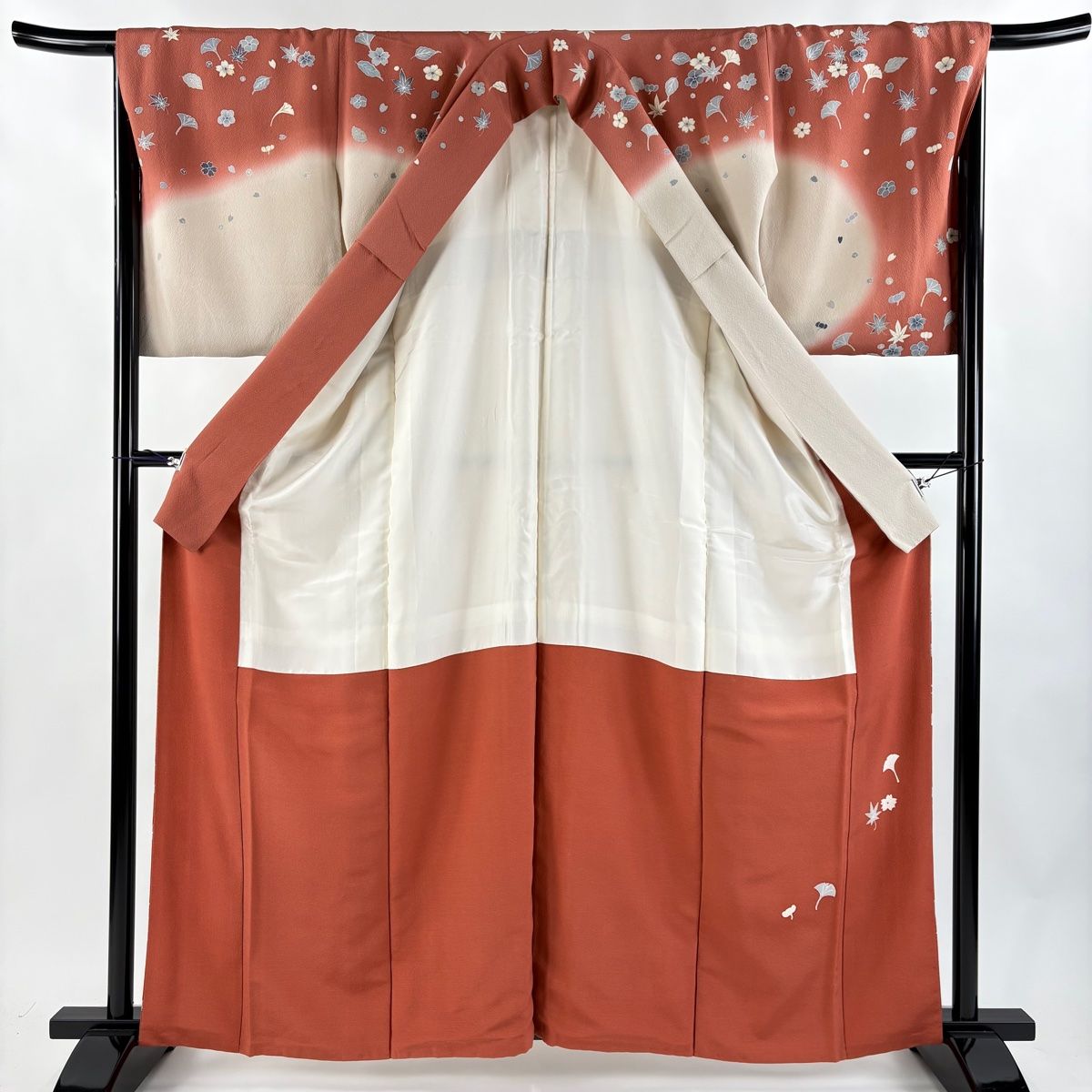 訪問着 身丈154cm 裄丈62.5cm S 袷 落款 童 枝実 裾ぼかし 薄オレンジ 正絹 秀品