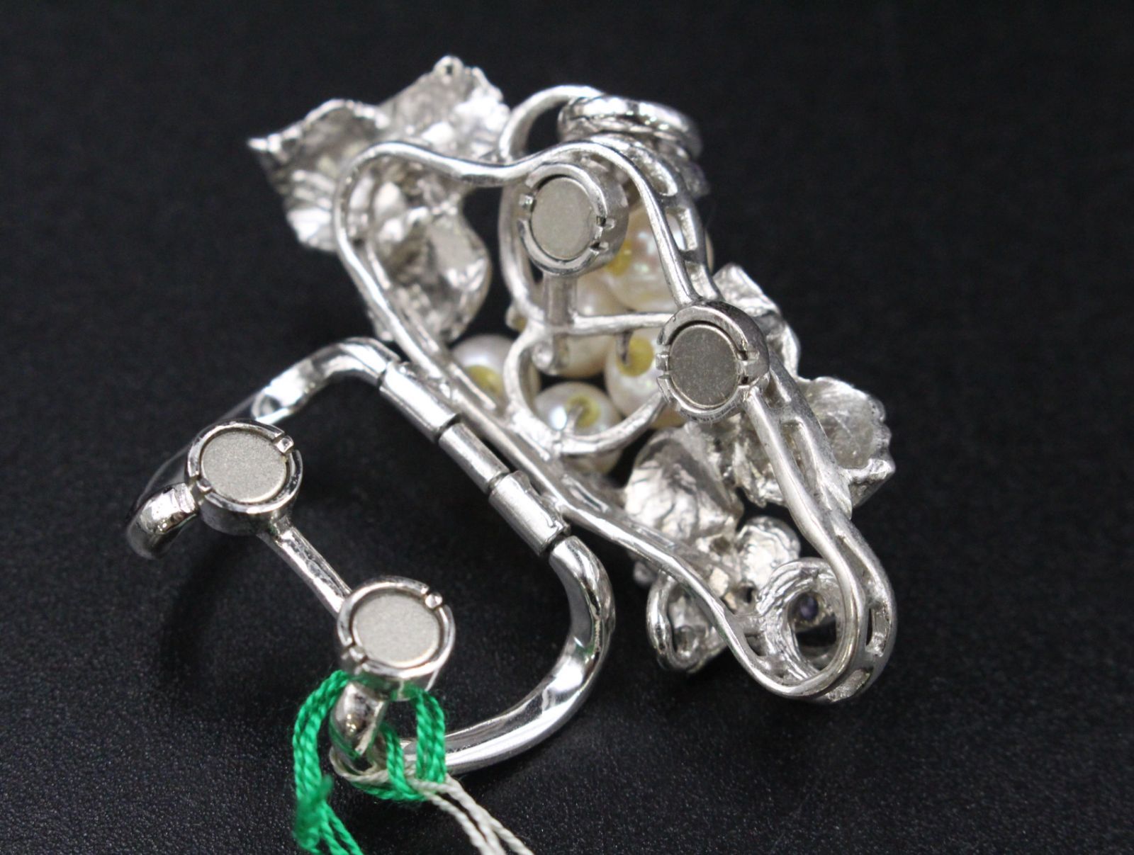 肥後象嵌 真珠 メノウ等 上 帯留 ブローチ 69g 東な6-0721ア㉑