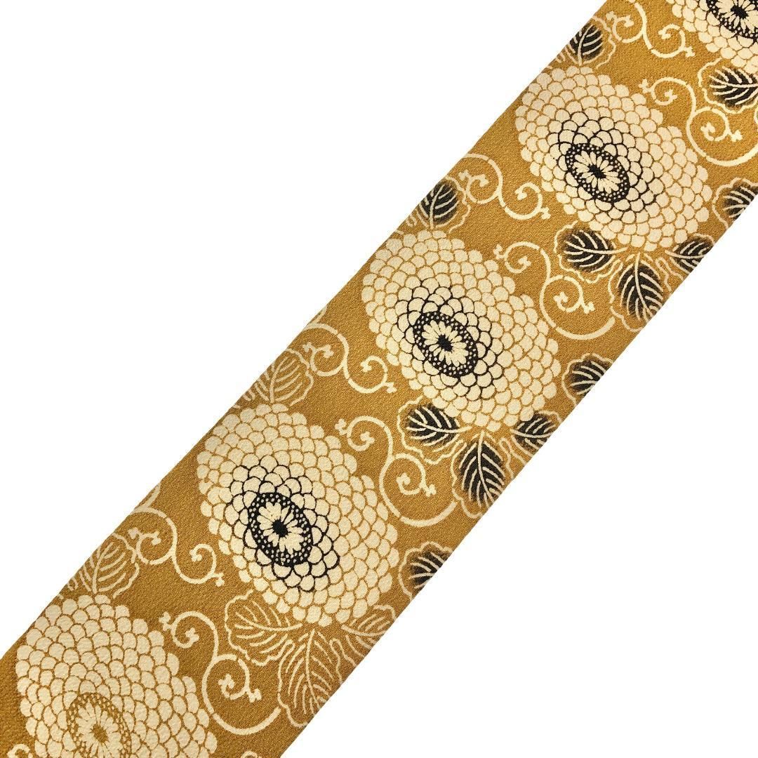 名古屋帯 型染 菊の花模様 縮緬 濃卵色 O-5466 GLOBALQUALITYIMPORTS_COM