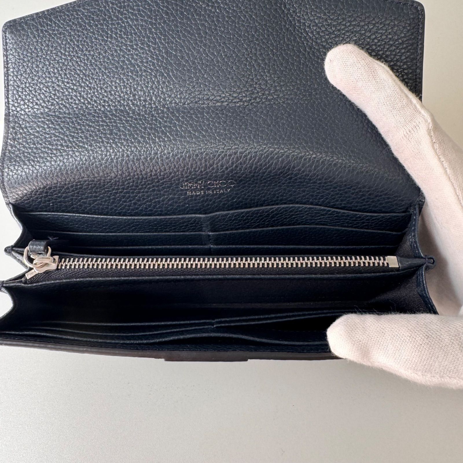 Bランク JIMMY CHOO 長財布 財布 ウォレット レザー シボ革 革 フラップ式 ネイビー 15ELの検索結果