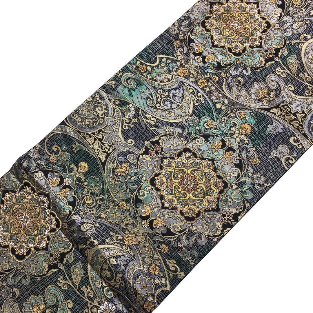 袋帯 カシミール華文 美しい華柄模様 陶彩箔 黒色 O-5631 GLOBALQUALITYIMPORTS_COM