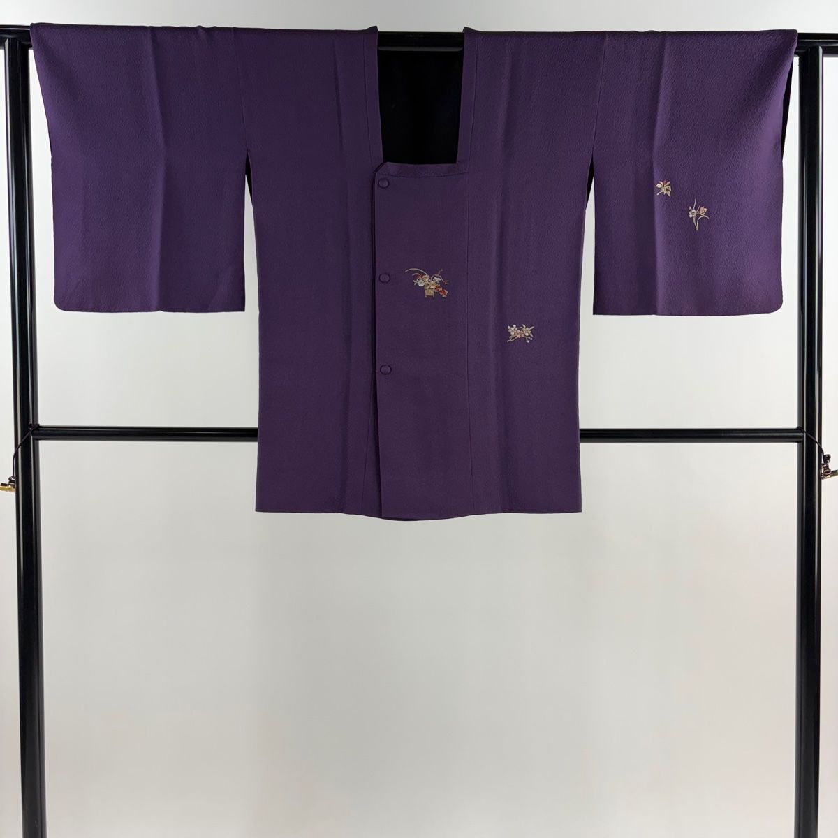 道行 身丈80cm 裄丈64cm M 和装コート 角衿 花籠 草花 刺繍 金糸 濃紫 正絹の検索結果