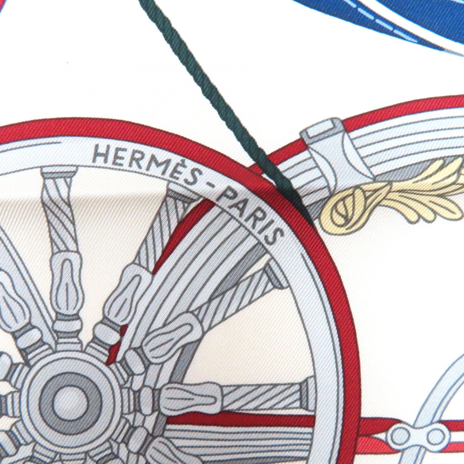 HERMES エルメス カレ90 ステイトリー ホイールズ シルク100% クレーム ボルドー ブルー スカーフ き フランス製 レディース GLOBALQUALITYIMPORTS_COM