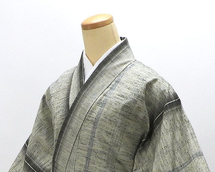 紬 身丈157.5cm 裄丈65.5cm M 袷 南風原花織 証紙 縞 花 灰色 正絹