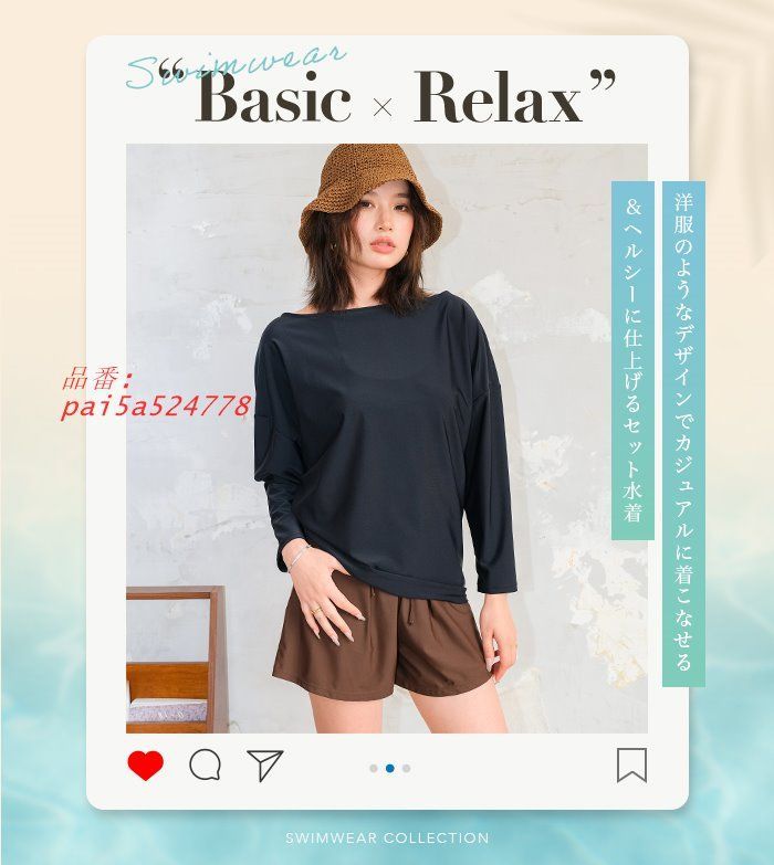 洋服のようなデザインでカジュアルに着こなせるセット水着。