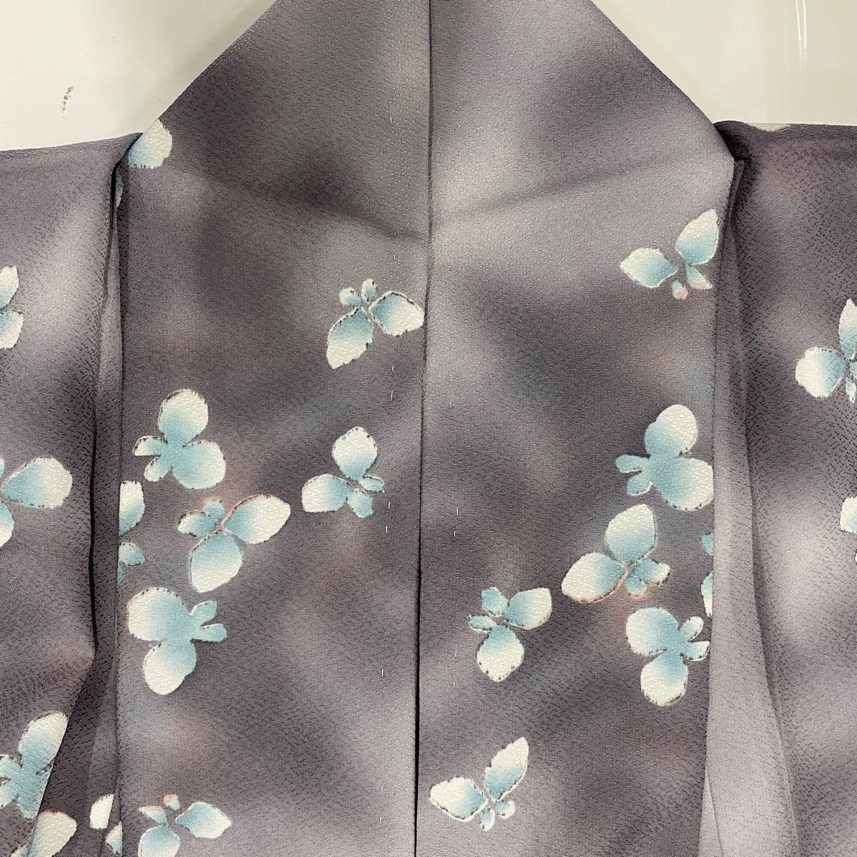 小紋 身丈163cm 裄丈67.5cm L 袷 蝶 ぼかし 灰紫 化繊 秀品 GLOBALQUALITYIMPORTS_COM