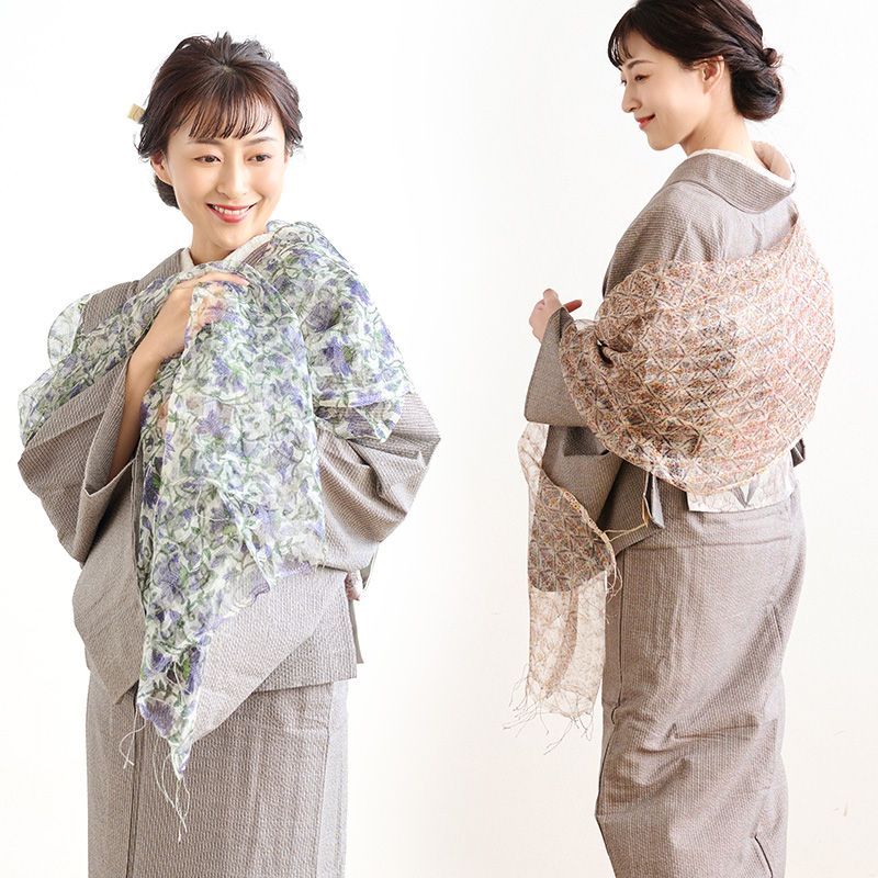 育てるショール 老舗ブランド 奥順謹製 結城紬 大判 ショール ストール 絹100% 和装 洋装 着物 小紋 訪問着 着付け 羽織 着物コート 着物防寒 春 夏 秋 冬 通年 毛皮 着物ショール 道中着 ポンチョ 和装小物 プレゼント IT