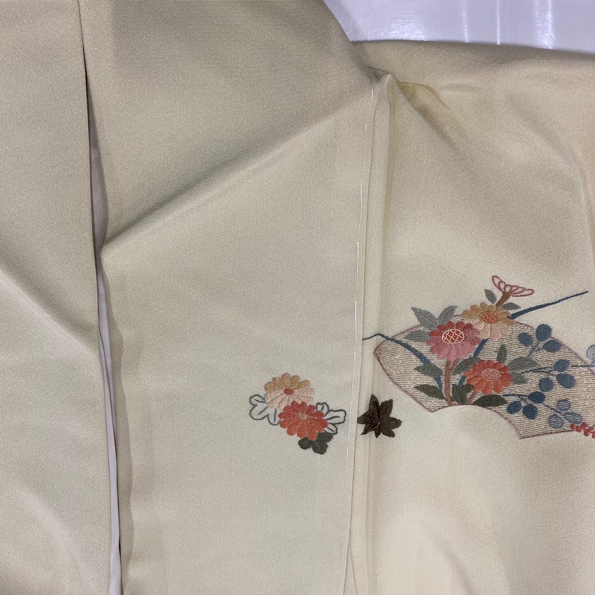 訪問着 身丈162cm 裄丈66cm M 袷 鈴乃屋 扇面 花鳥 刺繍 金彩 薄黄 正絹の検索結果