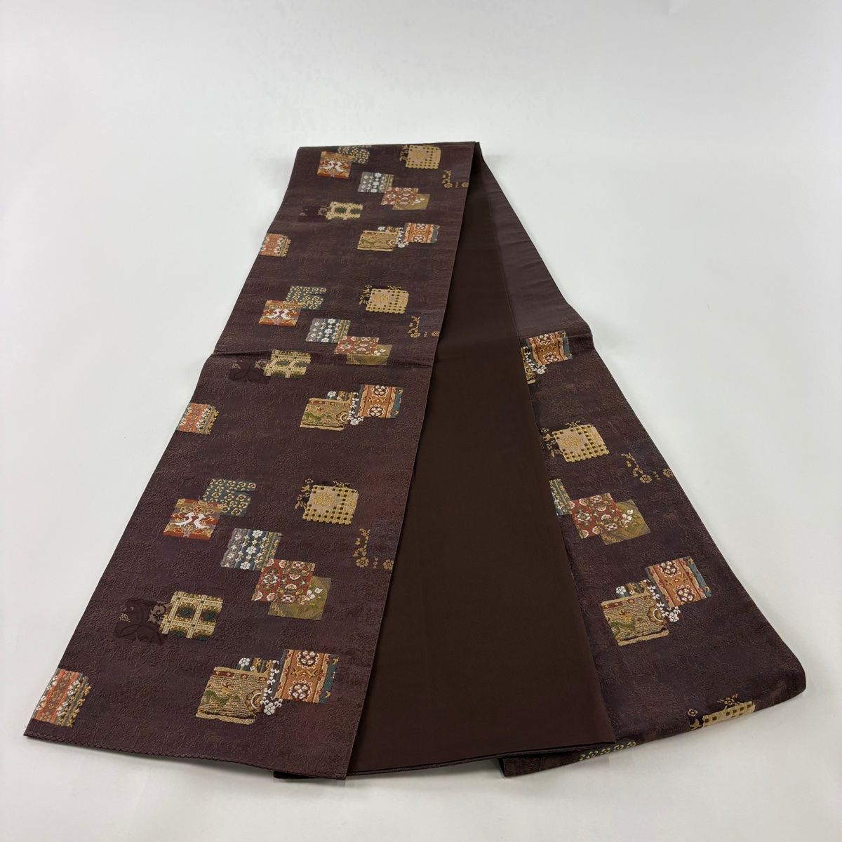 袋帯 秀品 色紙 動物 箔 金糸 茶紫 六通 正絹の検索結果