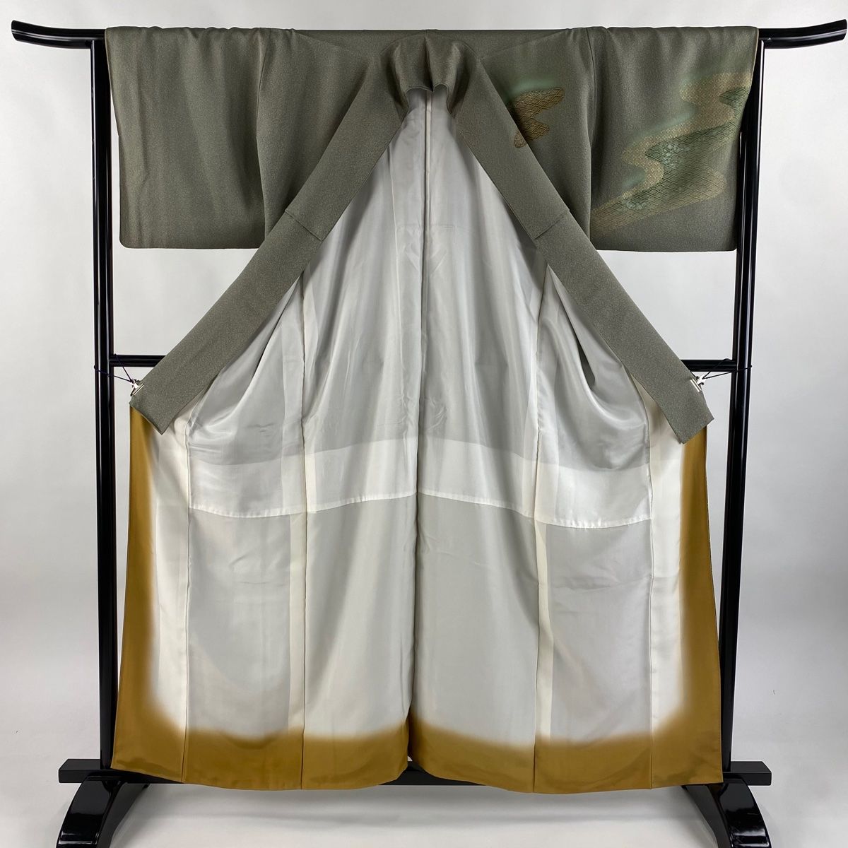 訪問着 身丈160cm 裄丈66cm M 袷 秋草 流水 金銀彩 ぼかし 灰緑 正絹 秀品の検索結果