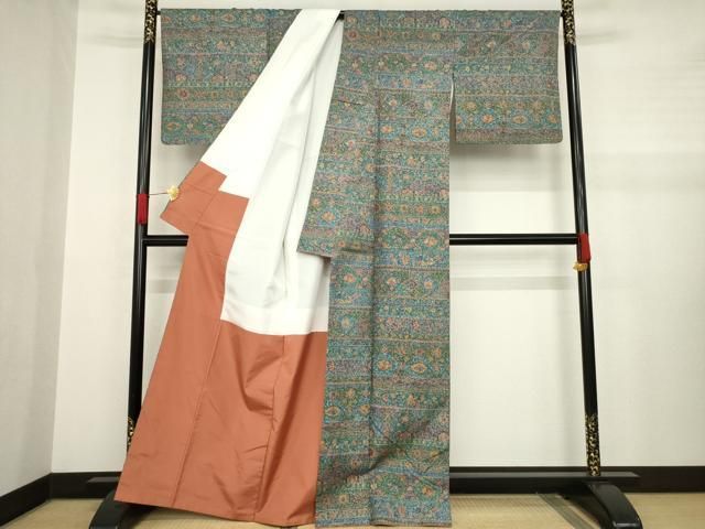 平和屋着物 上質な小紋 紬地 横段更紗花文 金彩 正絹 AABA7929ckの検索結果