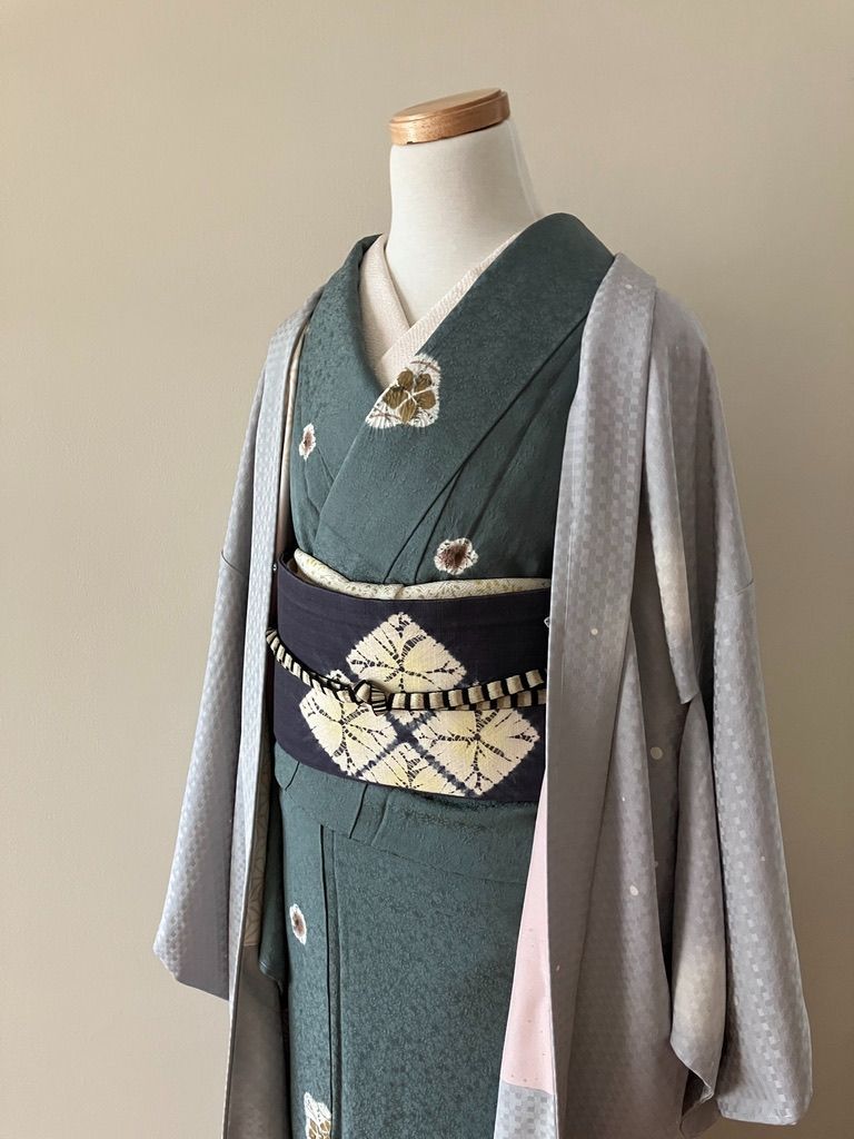 市松地紋×蛍ぼかし 長羽織 仕立て替え グレー系 ロング丈 C030の検索結果