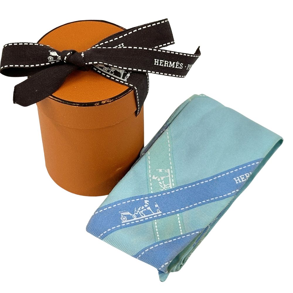 エルメス HERMES スカーフ ツイリー ボリュデュック レディース メンズ ブランド シルク ブルー ライトブルー リボン柄 ブルー系 上品 かわいい おしゃれ GLOBALQUALITYIMPORTS_COM
