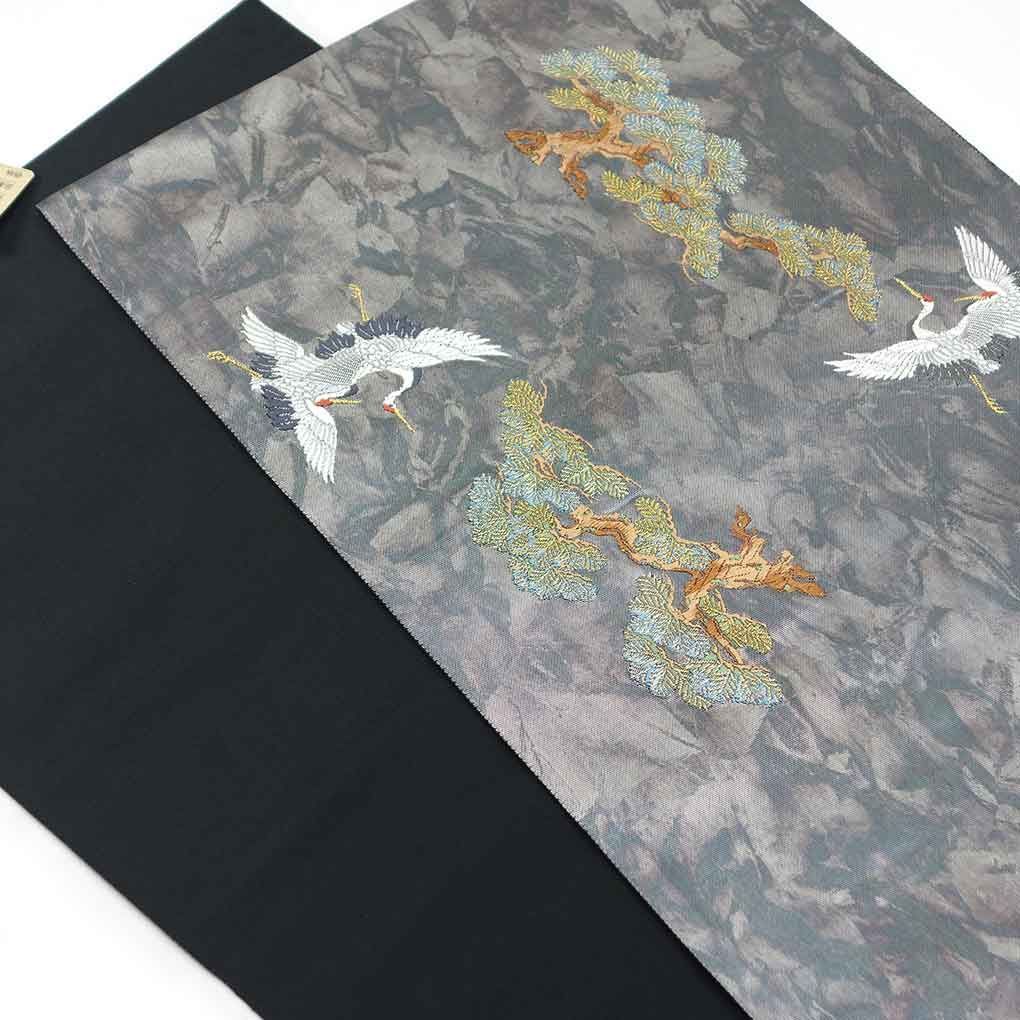 袋帯 幅31cm 長さ436cm レディース 鶴 秋冬春用 正絹 シルク シルバー リメイク リユース リサイクル 呉服のきくや GLOBALQUALITYIMPORTS_COM