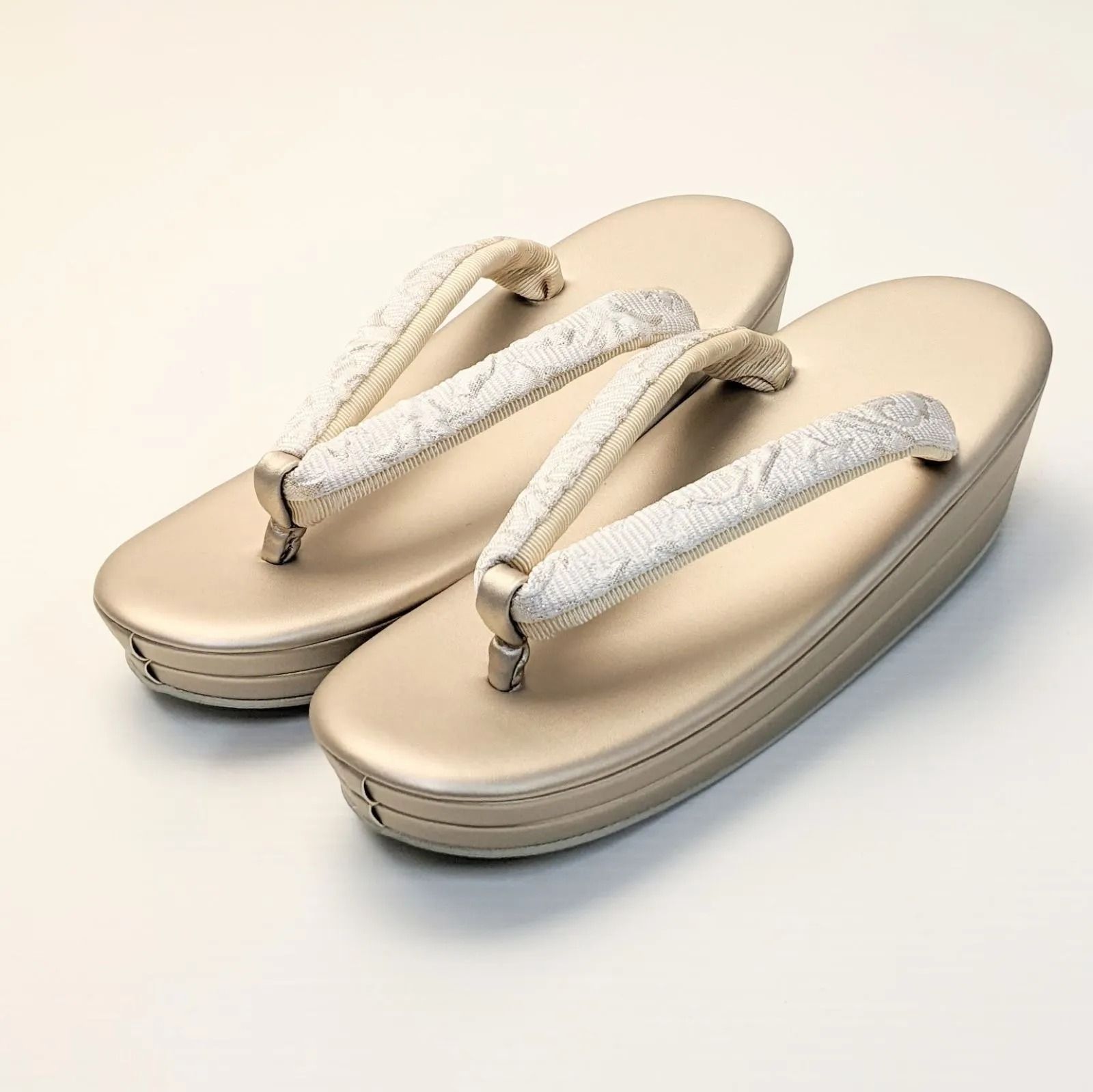 草履バッグセット 振袖用帯地 白×金 三枚芯 S M L LLサイズ w43-3