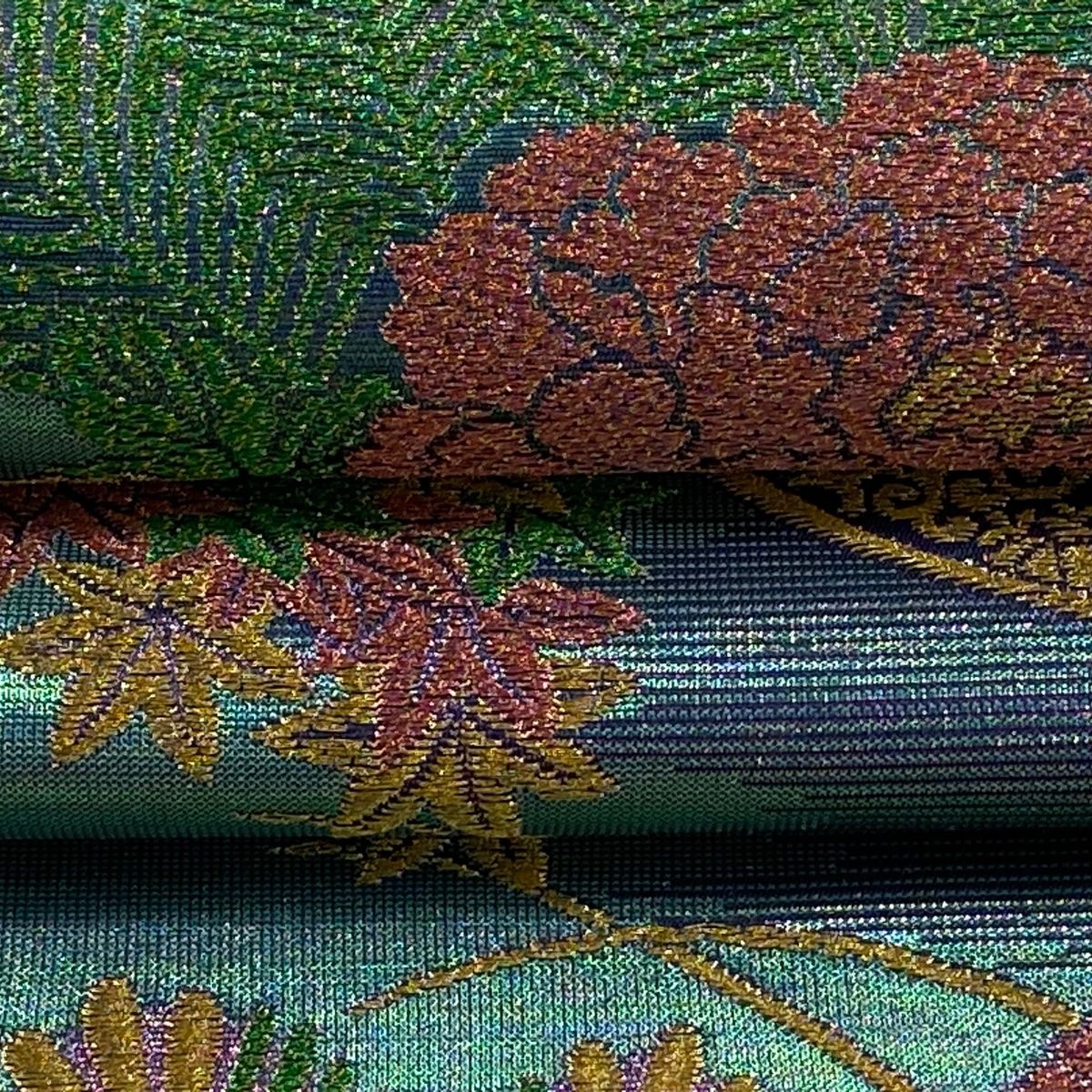 袋帯 佐波理 落款 佐波理綴 池田貞男 吉祥御所定 共 き 花車 松梅 金銀糸 箔 青緑 六通 正絹 GLOBALQUALITYIMPORTS_COM
