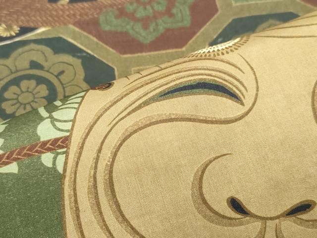 平和屋着物 アンティーク 大正ロマン 両面 全通柄京袋帯 蜀江色紙面文 正絹 DAAW6844obの検索結果