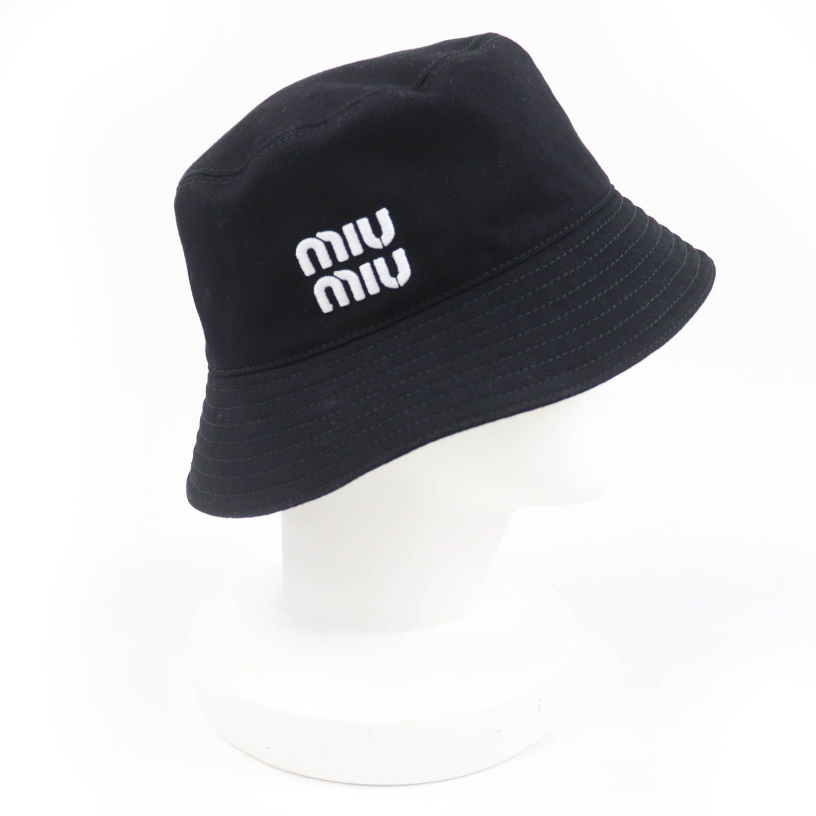 MIUMIU ミュウミュウ 製 5HC196 コットン100% ロゴ刺繍 バケットハット ブラック M イタリア製 レディース GLOBALQUALITYIMPORTS_COM