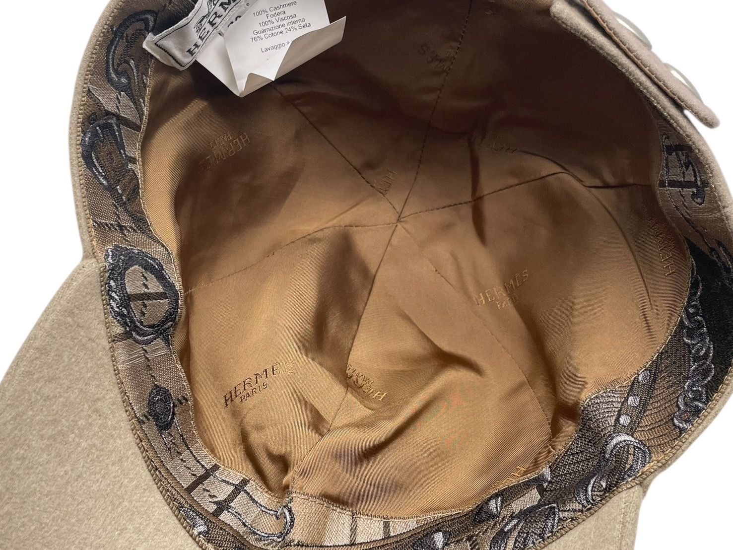 HERMES エルメス ライリー キャップ セリエボタン Hロゴ刺繍 ベージュ カシミヤ コットン シルク 59 634363N 4b007665 GLOBALQUALITYIMPORTS_COM